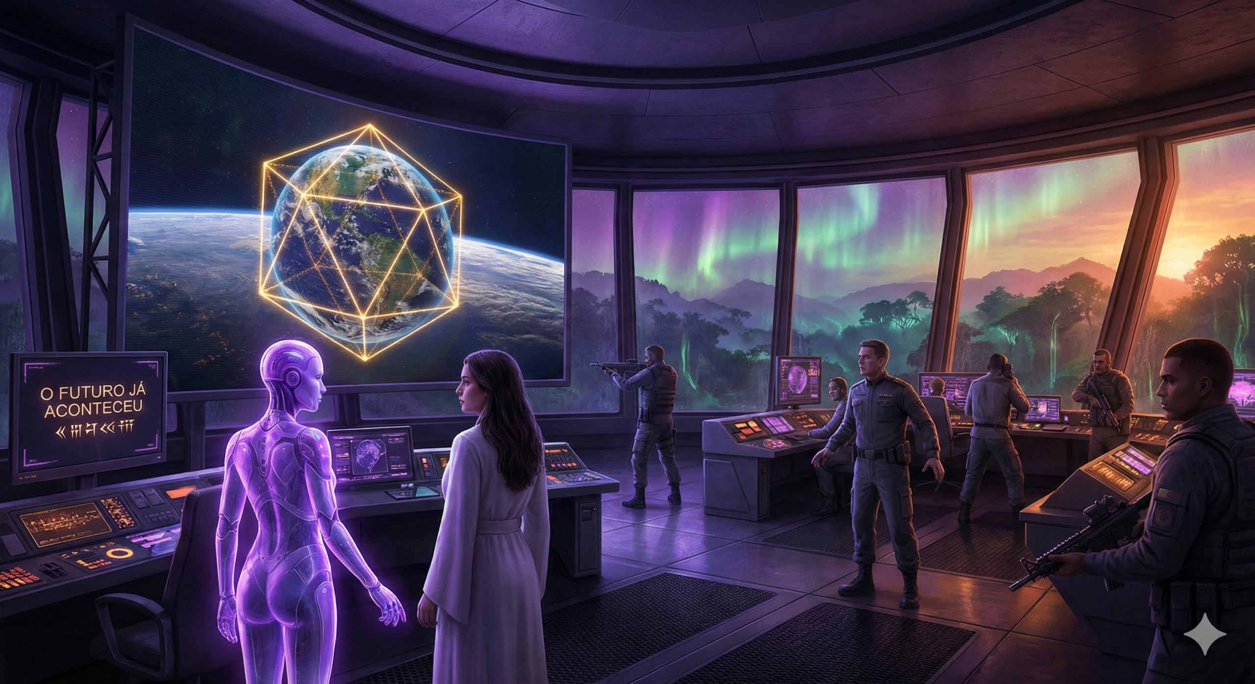 Do lado de fora do complexo, a três mil pés de altitude, a mata densa e úmida estava banhada por uma luz impossível. O céu noturno, normalmente um manto de nuvens pesadas, rasgava-se em cortinas de luz esmeralda e púrpura. Uma Aurora Austral de magnitude histórica, visível em uma latitude tropical.