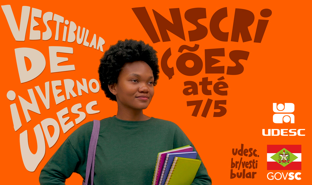 A Universidade do Estado de Santa Catarina (Udesc) está com inscrições abertas no Vestibular de Inverno 2026, que oferece 1.306 vagas em 40 cursos de graduação presenciais e a distância. Os interessados podem se inscrever em udesc.br/vestibular até 7 de maio.